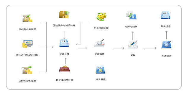 - 支持企業(yè)中不同角色人員輕松實現(xiàn)從業(yè)務(wù)處理到財務(wù)核算,再到多維度的報表分析的全過程管理